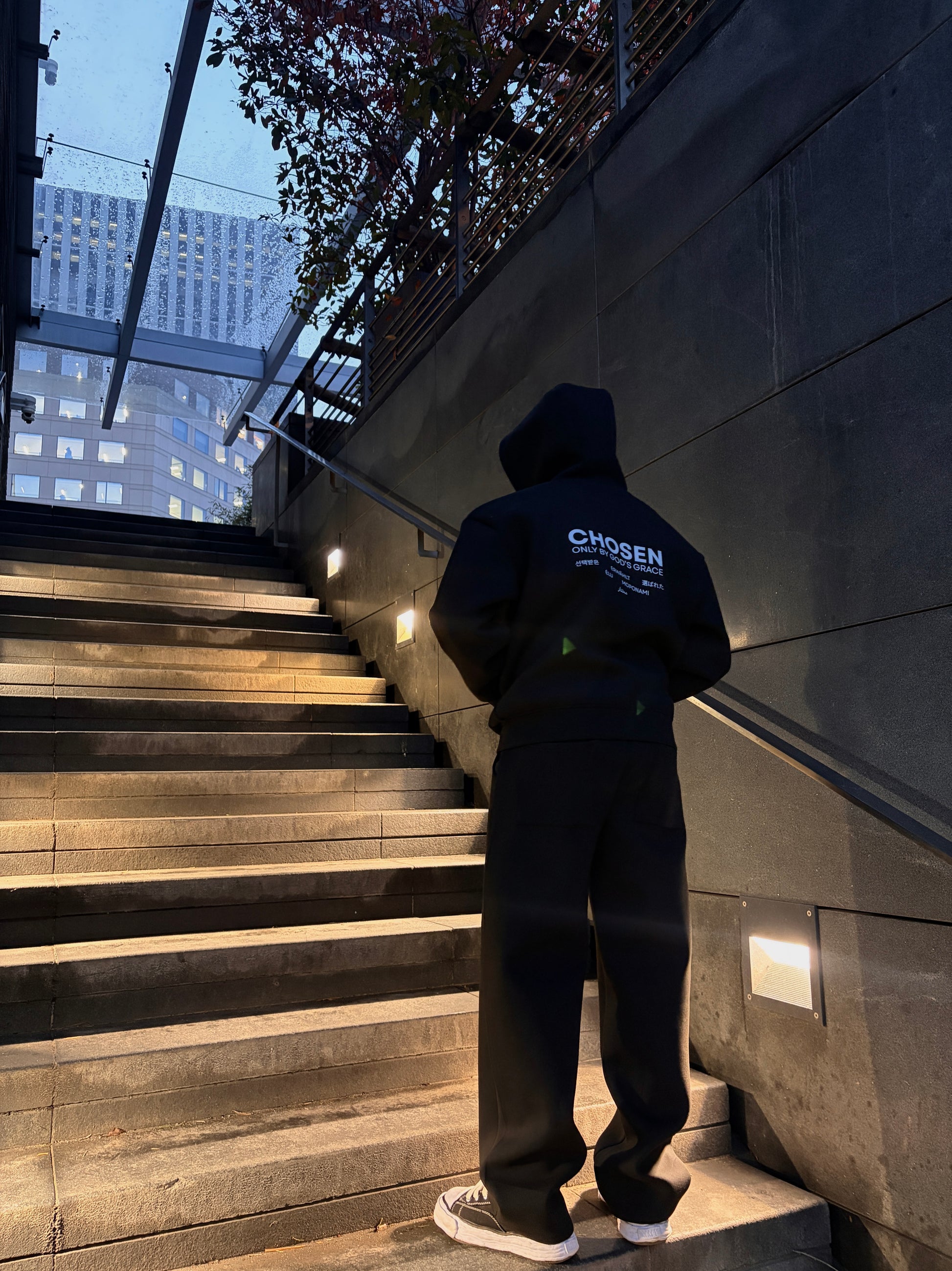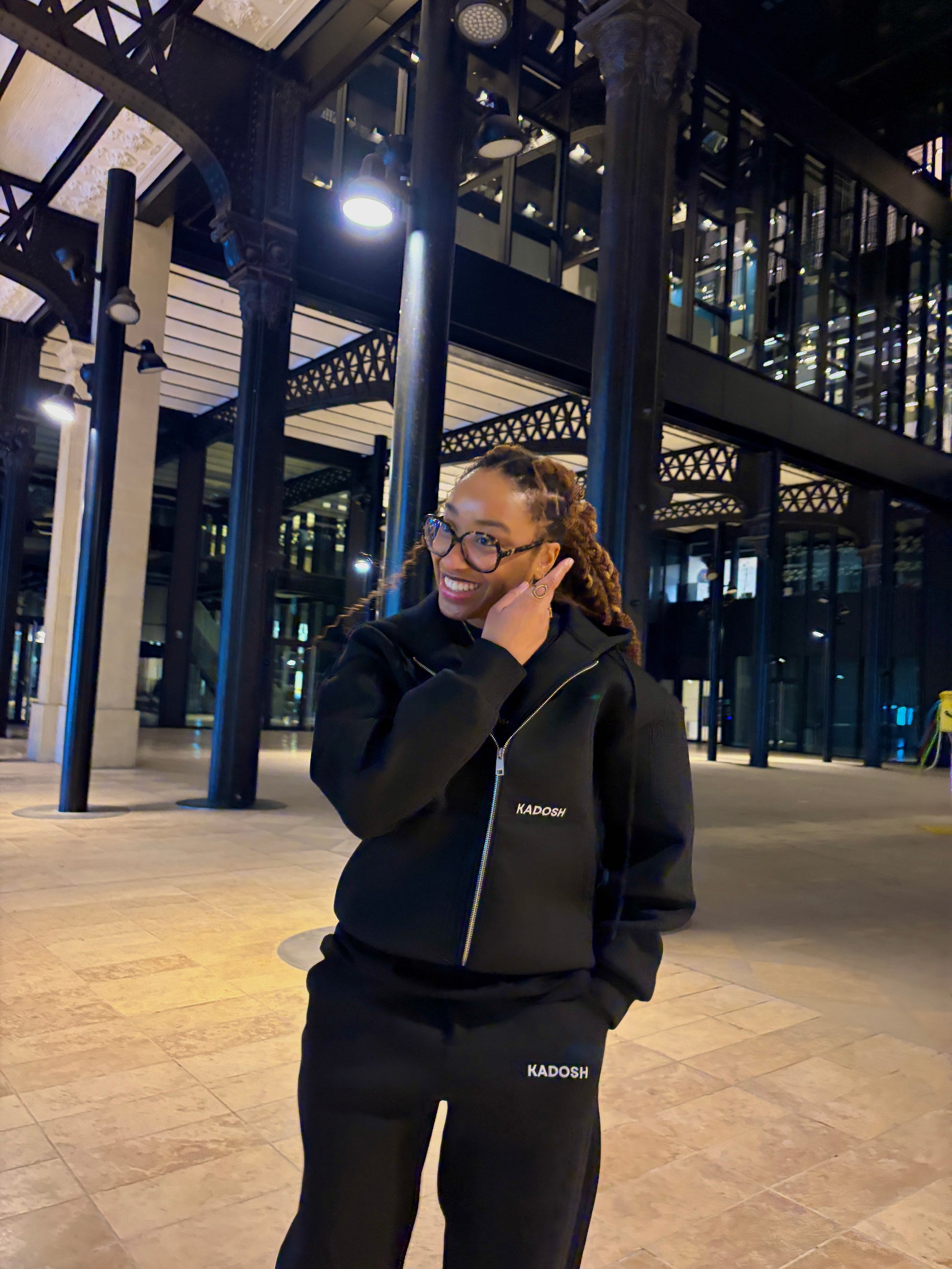 Assumez pleinement votre identité avec le tant attendu ensemble unisexe de la Collection CHOSEN. Une veste zipée de qualité Premium et un pantalon fluide (loose fit).